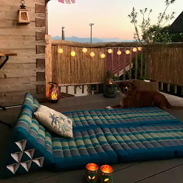 Unsere farbenfrohen Thaikissen bieten eine besondere Art der Entspannung und enthalten nur das Beste der Natur. Alle unsere Thaikissen sind zu 100% mit reinem und unbehandeltem Kapok gefüllt. Thaikissen sind so facettenreich wie das Leben selbst. Unsere Thaikissen eignen sich perfekt als Lesekissen, Kissen zum Fernsehen oder einfach nur zum „Relaxen“. Unsere Klappmatratzen und Rollmatten sind besonders als Gästematratzen und Entspannungsmatten beliebt. Sitzkissen und Yogakissen erfreuen sich großer Beliebtheit als Stuhlauflage, Entspannungskissen oder Meditationskissen.